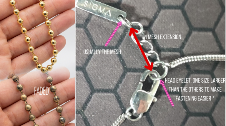 Products began to fade or darken after a short period of normal wear, especially around chain connections and ring edges.