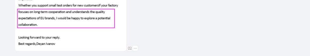 “If your factory focuses on long-term cooperation and understands the quality expectations of EU brands, I would be happy to explore a potential collaboration.”